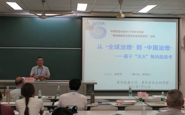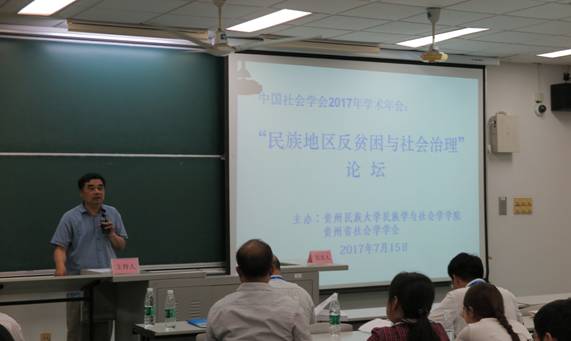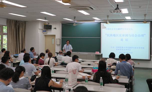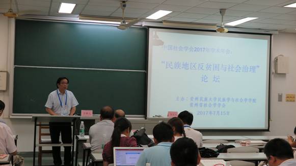 2017年7月14至16日,由中国社会学会主办,上海大学、上海市社会学学会等单位联合承办的中国社会学会2017年学术年会在上海大学隆重召开,年会主题为“迈向共建共享的全面小康社会”。本次年会共设置59个分论坛,其中贵州民族大学民族学与社会学学院、贵州省社会学学会联合主办了“民族地区反贫困与社会治理研究论坛”。